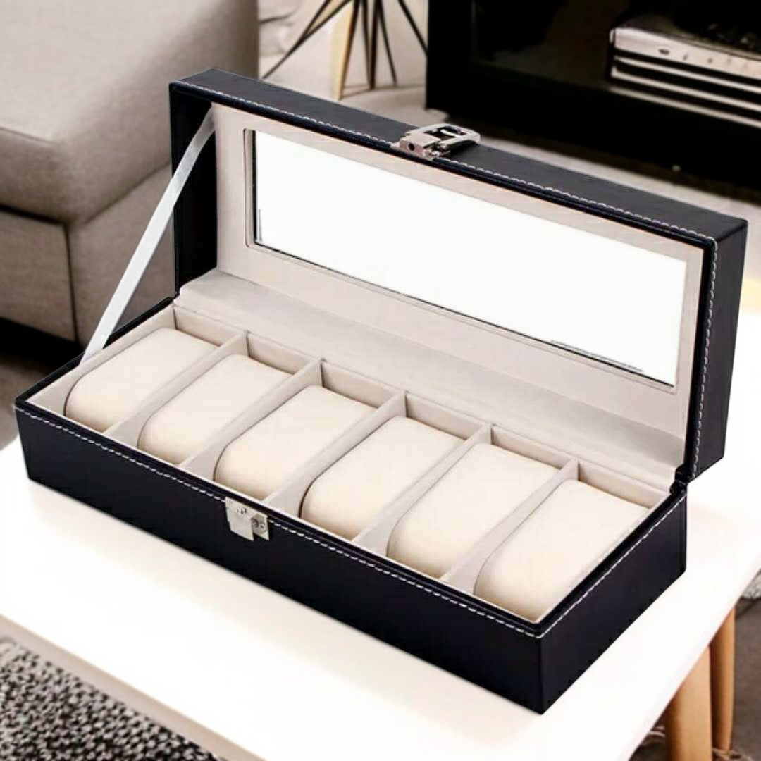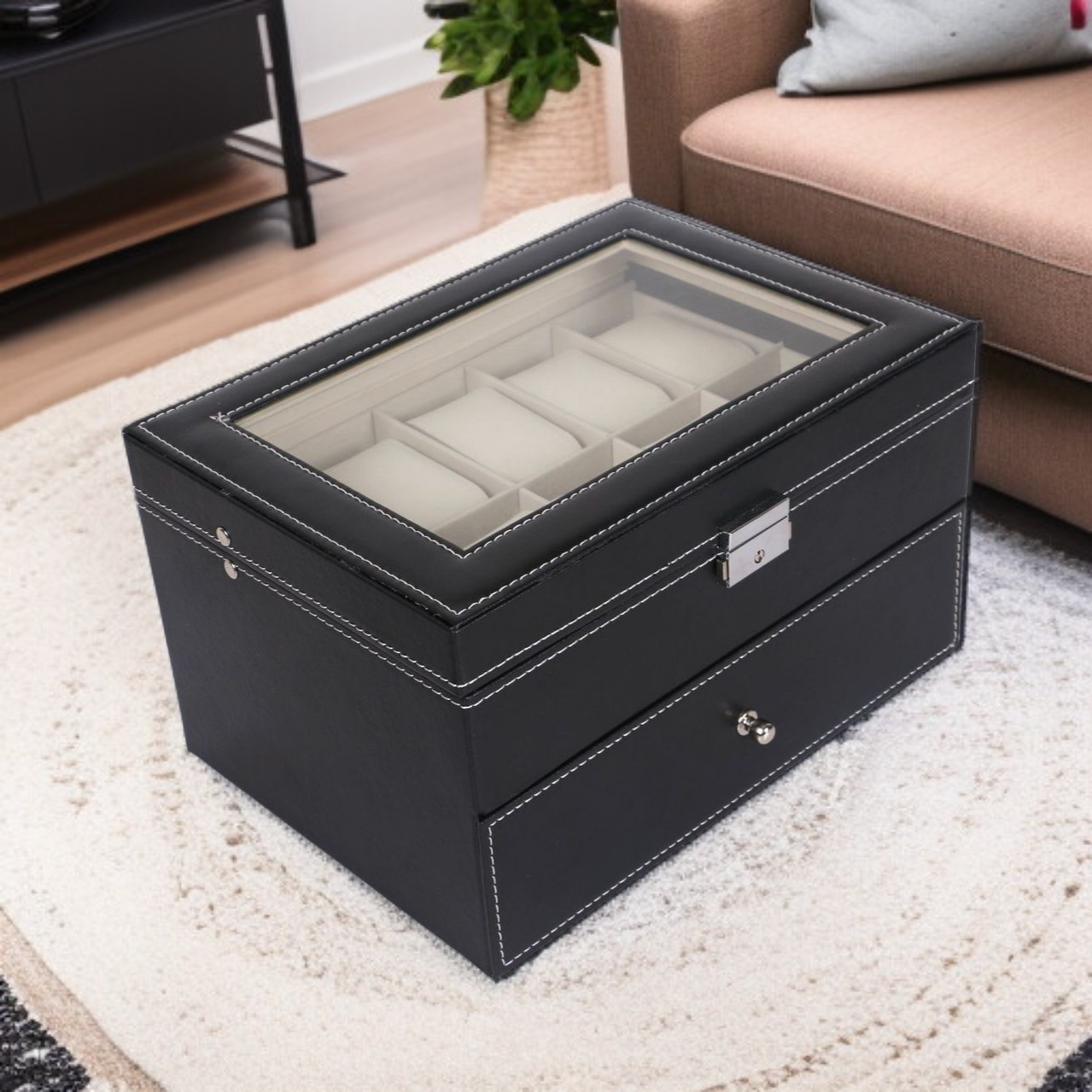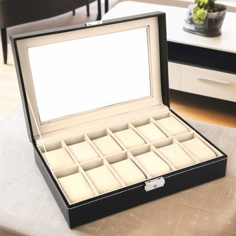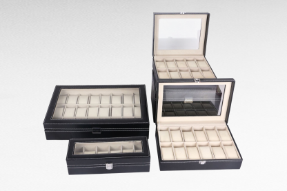 Drewniane pudełko na zegarki z PU do przechowywania i eksponowania zegarków i biżuterii
