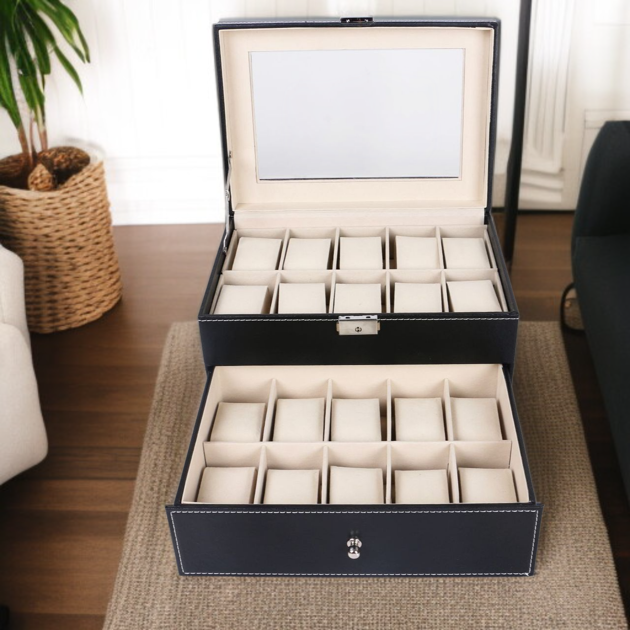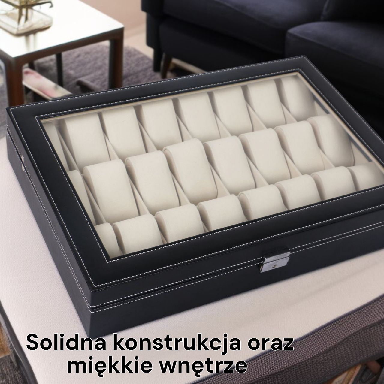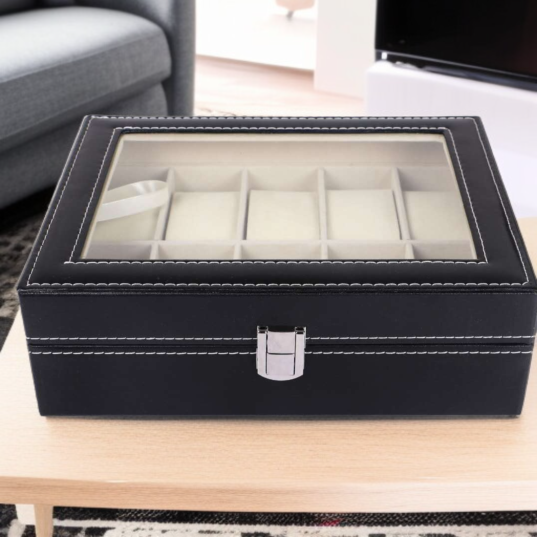 Drewniane pudełko na zegarki z PU do przechowywania i eksponowania zegarków i biżuterii