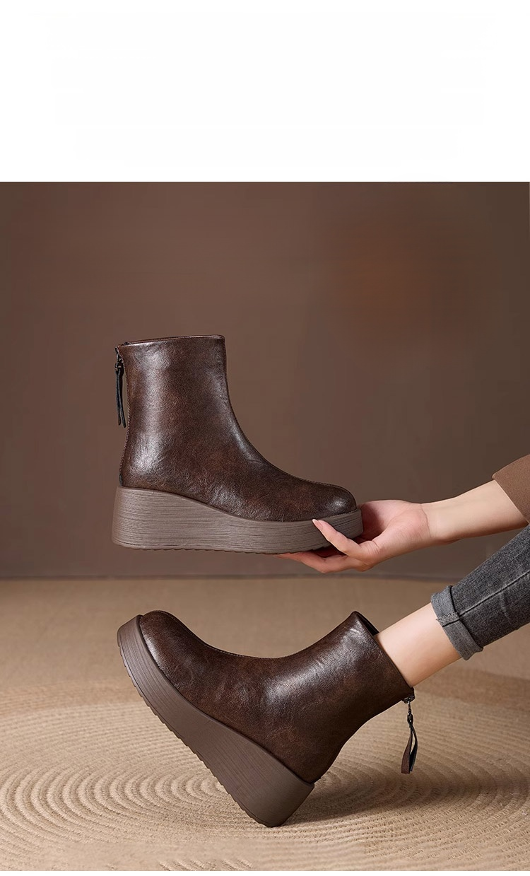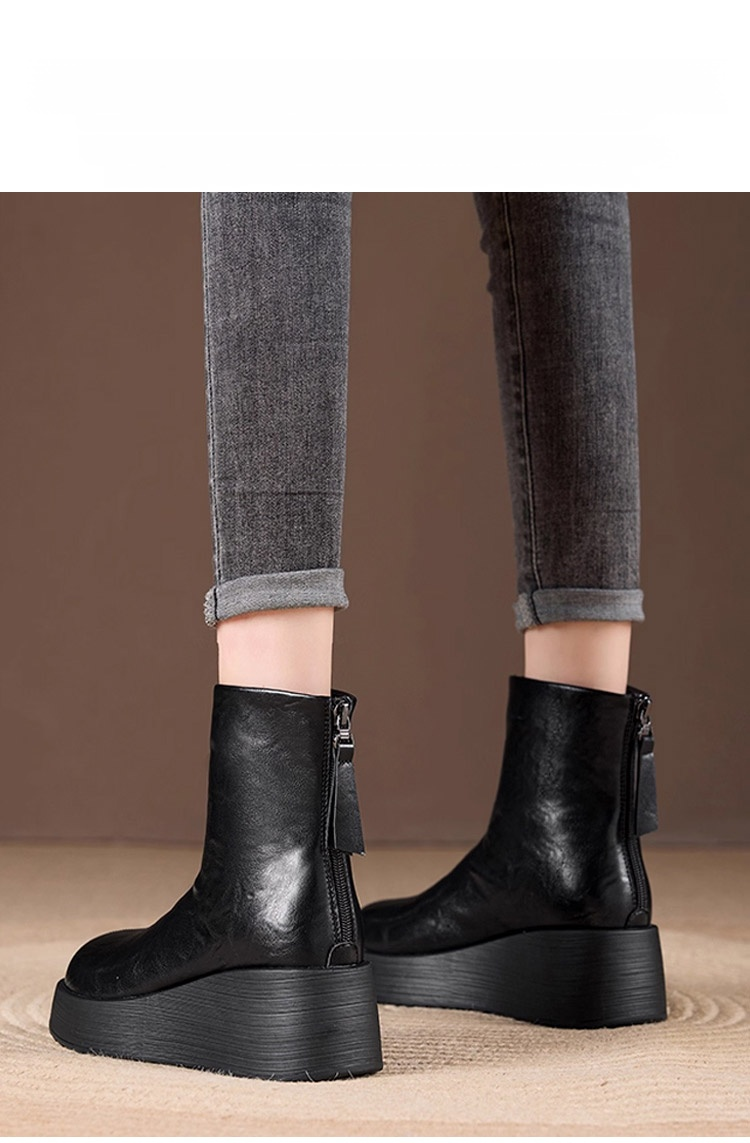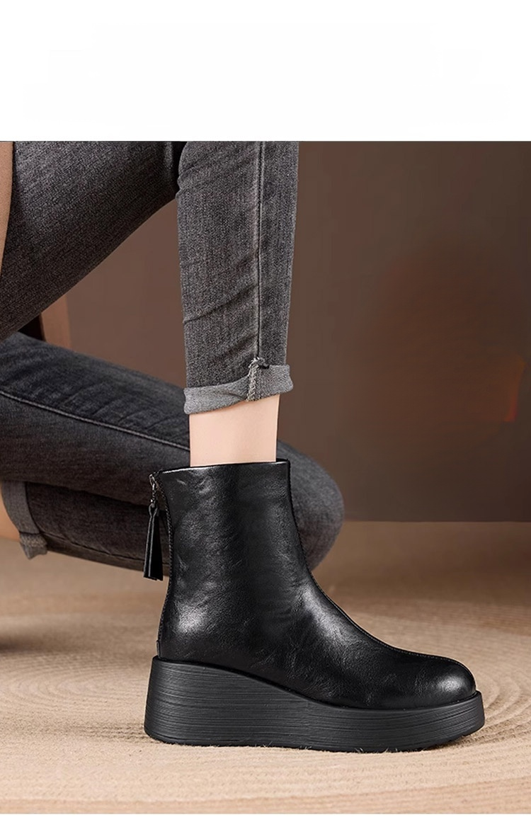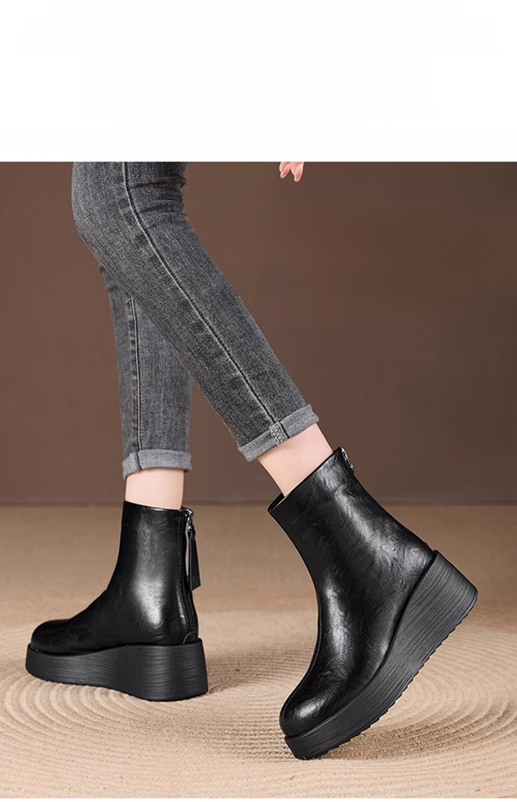 [Obcas podwyższony o 7 cm] Wygodne, skórzane botki na grubej podeszwie